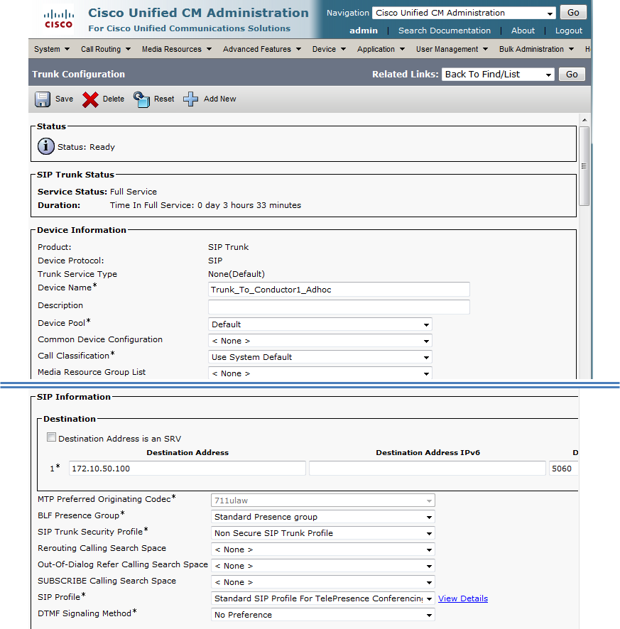 - Cisco TelePresence Conductor and Cisco TelePresence MCU conference bridge types now require an existing SIP trunk to be referenced